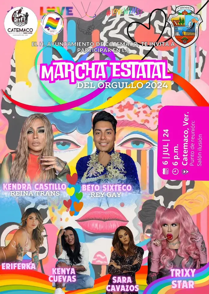 Catemaco, Ver.-El H. Ayuntamiento Constitucional de Catemaco, a través de la Coordinación de Atención a la Diversidad de Género y Grupos Vulnerables se complace en anunciar que, gracias al apoyo de las y los ciudadanos en las marchas que se han realizado anteriormente, este 2024 Catemaco será sede de la Marcha Estatal del Orgullo LGBTIQ+ y recibiremos con los brazos abiertos a diferentes municipios para celebrar con orgullo la diversidad.