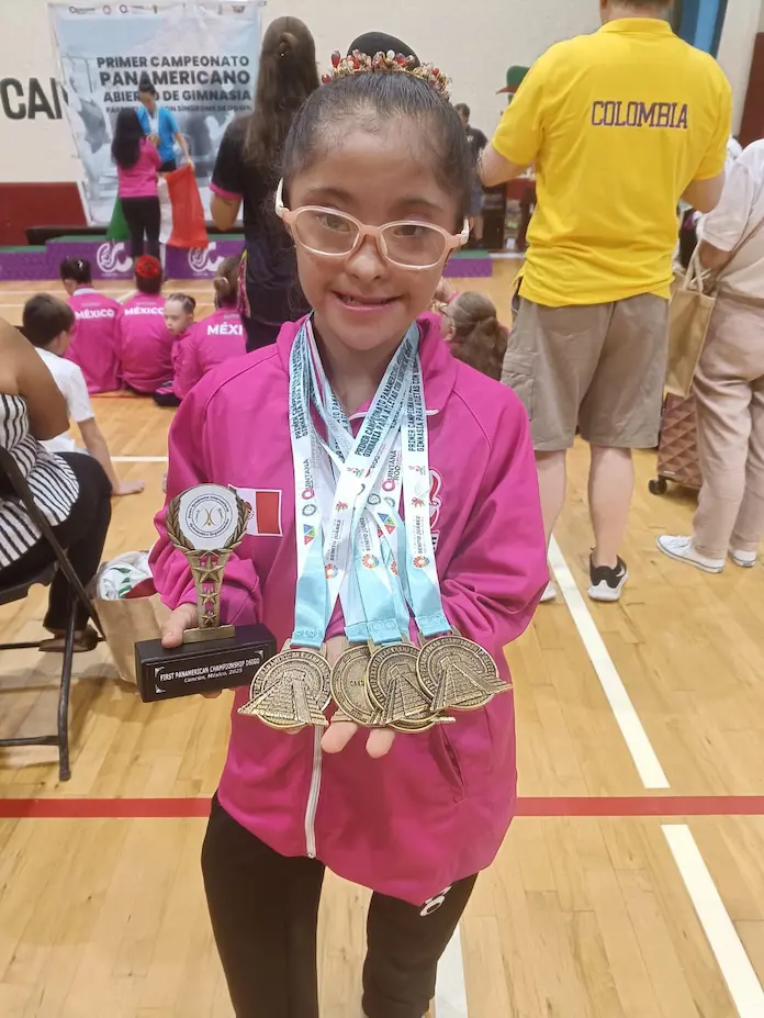 «¡Muchas felicidades a nuestra Gimnasta Zoe Lopez, quién es Campeona Panamericana en Gimnasia Rítmica de Síndrome de Down, Medalla de Oro en Manos Libres, aro, pelota y clavas! La cual tiene su pase directo al mundial en el mes de junio del 2026 en Bulgaria. Estamos orgullosos de ti Zoe de todo este trabajo que has venido realizando en Club De Oro, y ahora estás viendo el fruto de todo tu esfuerzo y demostrando que no hay límites, que el deporte y la Gimnasia Rítmica es para todos. Club de Oro, está de fiesta y orgulloso de ti.»