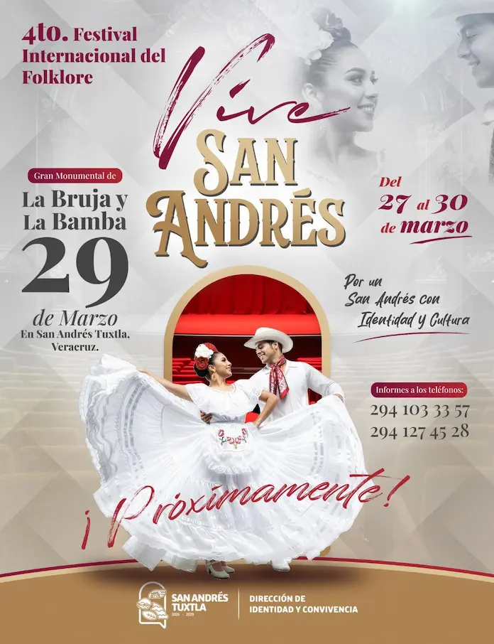 Llega el 4º Festival Internacional del Folklore “Vive San Andrés”, una fiesta que celebra nuestras raíces y pone a San Andrés Tuxtla en el escenario cultural.