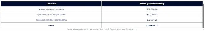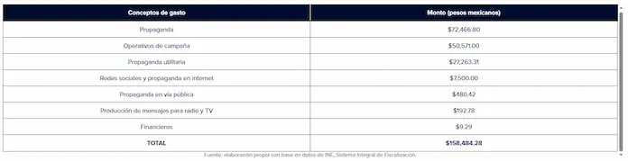 La gran mayoría de estos gastos fueron cubiertos por los partidos de la coalición (MORENA, PT, PVEM, Hagamos y Futuro) y solo se reportó que el candidato celebró un contrato de 68 mil 440 pesos para propaganda y la compra de artículos utilitarios con la empresa Marketing Global Jolidyn.