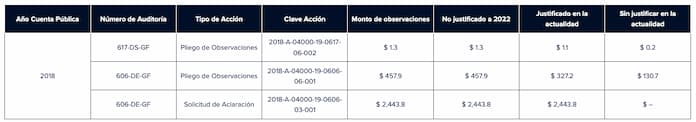 Dentro de la lista, se verificó que entre las acciones de auditorías de 2018 que revisó el área de López Ruiz se encuentran las que más dinero le observó la ASF a la administración de Alito; mismas que no fueron justificadas en su periodo como gobernador, sino que fueron “palomeadas” años después.