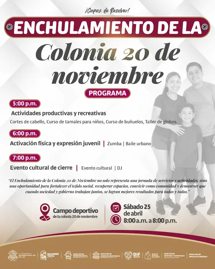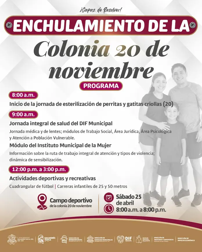 Habrá jornada de salud, atención del DIF, actividades deportivas, talleres, esterilización de mascotas y mucho más.